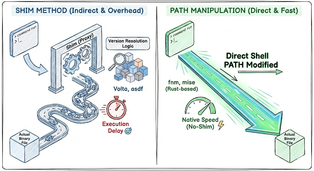 1. 기술적 구조의 이해: Shim과 PATH 조작 방식의 차이